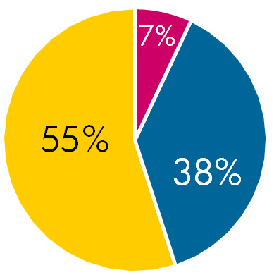 Non-verbal (voice+body language) makes up a total of 93%.